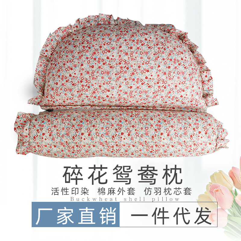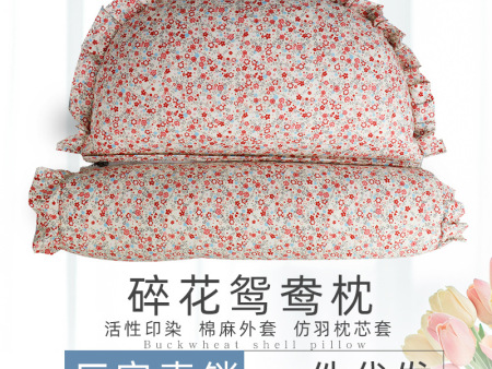 南阳艾绒厂网供批发艾绒枕芯全棉面料安睡枕会销礼品枕碎花鸳鸯